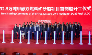 9月29日,中船集团北海造船为巴西淡水河谷(VALE)量身设计的新一代GuaibaMax型32.5万吨甲醇双燃料超大型矿砂船首制船举行开工仪...