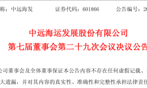 7月29日,中远海运发展股份有限公司(以下简称“中远海发”)发布多则公告披露,同意公司全资子公司海南中远海发航运有限公司(以下简称“海南中远...