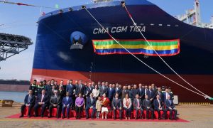 4月3日,中船集团北海造船与中船贸易作为联合卖方,为达飞海运建造的5500TEU集装箱系列船“CMA CGM TIGA”轮举行命名交付仪式。...