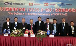 3月8日上午,武船集团青岛北海船舶重工为和合航业(香港)有限公司建造的第二艘25万吨矿砂船19号船举行交船和命名仪式。 中国船舶重工集团公司...