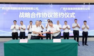 据中新网消息,5月23日,北部湾港股份有限公司与山东港口青岛港、日照港,安通控股、泛亚航运、中谷物流等23日在广西南宁共同签署《“两港一航”...