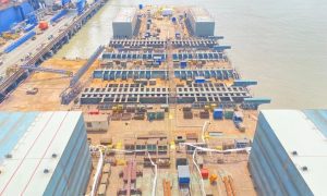 5月25日,华润大东厂区内,半潜船“福特”轮最后一个“右前舷侧浮箱分段”顺利脱钩。至此,8个分段约2400吨吊装作业顺利结束,比原定计划48...