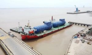 6月26日,载着裕龙石化15万吨/年顺酐装置4台塔器的运输船离开华滋能源码头,驶向目的地山东龙口裕龙岛,将安装于建设中的4000万吨/年裕龙...