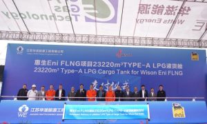 4月20日,华滋能源完成惠生Eni F445 MARINE XII OFFSHORE FLNG项目23,220m³A型LPG液货舱2号罐交付...