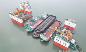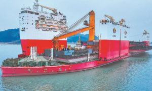 2月28日,在宁德三都澳灶屿水域,全球第三大半潜船“华瑞龙”轮装载价值约2.5亿元的13艘工程类船舶,启程出海,前往非洲几内亚。 据了解,“...