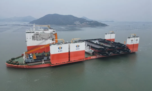 3月3日,交通运输部广州打捞局8万吨自航半潜船“华瑞龙”装载13艘工程类船舶从福建省宁德市三都澳港区灶屿锚地启航前往几内亚,预计将于45天后...