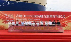 吉利“吉速荣耀”号滚装船在宁波舟山港命名并开启首航