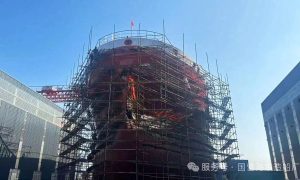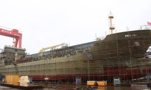 14000吨油化船艏柱合拢 6月7日,国营海东造船厂为舟山市中拓海运有限公司建造的14000DWT油化船艏柱合拢成功,标志着主船体全部成型。...