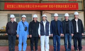 3号4号6600DWT不锈钢油化船开工 3月21日,国营海东造船厂为浙江云翔海运有限公司建造的3号4号6600DWT不锈钢油化船顺利开工。 ...