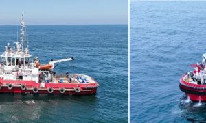 5月13日,国营海东造船厂出口的两艘30米级拖轮“MARACA”“CARIBE”举行交船签字仪式。 该系列船总长30.50米,型宽11.00...