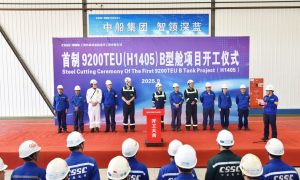 9月22日,外高桥造船为法国达飞海运集团9200TEU系列H1405船B型舱顺利开工建造,开工仪式在外高桥海工顺利举行。 为确保双燃料箱船批...
