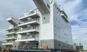 8月28日,外高桥海工首制8600车双燃料滚装船(PCTC)H1600项目首批活动甲板分段产品顺利交付发运,为该公司PCTC各类型产品的批量...