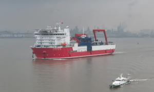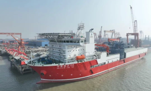 近日,江苏大洋海洋装备有限公司建造的多功能海缆施工船“华夏德京108”号正式开启其出江试航任务。 “华夏德京108”轮船体总长171米,型宽...