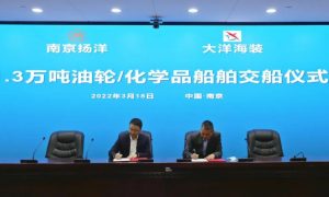2022年3月18日上午,南京扬洋化工运贸有限公司与江苏大洋海洋装备有限公司在南京和泰兴两地同时进行了13000吨油化船——“宁化431”轮...