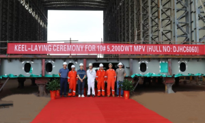 近日,天海防务全资子公司江苏大津重工有限公司,为德国船东JSP公司批量建造的5200吨多用途干货船迎来了一船接水、双船上船台节点。 11月6...