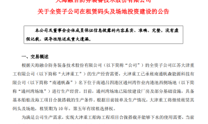 11月6日晚间,天海融合防务装备技术股份有限公司发布《关于全资子公司在租赁码头及场地投资建设的公告》。 公告披露,天海防务全资子公司大津重工...