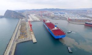 4月23日,由大连中远海运川崎船舶工程有限公司为中远海运集团建造的两万箱级超大型集装箱船(DE040)举行下水仪式。中远海运船东驻厂监造组、...