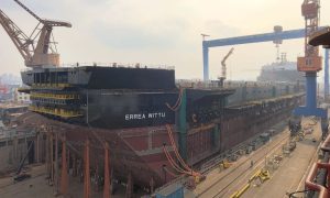 10月28日,中国船舶大连造船为招商轮船建造的17.5万立方米LNG运输船2号船圆满完成出坞节点。 该船总长约295米,型宽46.4米,型深...