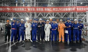 9月29日,中国船舶大连造船为招商轮船建造的17.5万立方米LNG运输船首制船2货舱声音试验及3货舱TBP/EOB安装后第二次声音试验取得圆...
