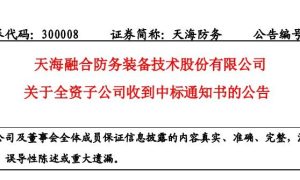 11月30日, 天海融合防务装备技术股份有限公司(天海防务)发布公告,武汉船用机械有限责任公司(武汉船机)和天海防务全资子公司江苏大津重工有...