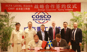 5月31日上午,中远海运重工所属威海重工科技(CHIT)与阿法拉伐(Alfa Laval)签署了战略合作协议,双方将借助自身市场、技术和制造...