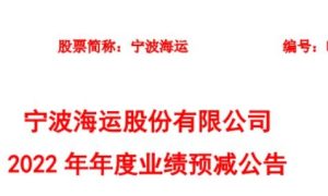 1月29日晚间,宁波海运发布业绩预减公告称,2022年,公司预计实现净利润约1.05亿元至1.40亿元,同比减少约56%至67%;实现扣非净...