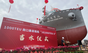 11月20日,台州市建兴重工有限公司为宁波远洋新造1000标准箱敞口集装箱船首制船举行吉水仪式。 1000标准箱敞口集装箱船是为满足内支线业...