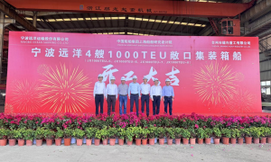 12月26日,宁波远洋运输股份有限公司1000TEU系列敞口集装箱船项目中的前4艘船舶在浙江台州市建兴重工有限公司同时点火开工。 据悉,该型...