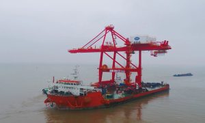 4月8日,“振华12”轮装载着上港独山项目1台岸桥,从振华重工长兴分公司码头起航前往用户码头。 该项目为短周期项目,共2台岸桥,均采用川丰电...