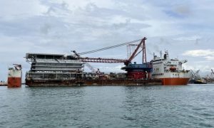 近日,交通运输部广州打捞局“华兆龙”轮在泰国“Bundled Phase 3”项目中,成功完成采油平台“NSWA”的移位再利用安装作业。该平...