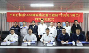 1月10日,南通振华重型装备制造有限公司承建的广州打捞局5000吨自航式全回转起重船“华兆龙”举行完工四方见证签字仪式。这一关键节点的完成标...