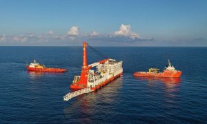 9月7日,广州打捞局“华润龙”在辽宁大连市金县1-1 WHPB平台顺利将海管终止段输送入水,标志着中海油金县1-1油田2D井区海管铺设项目圆...