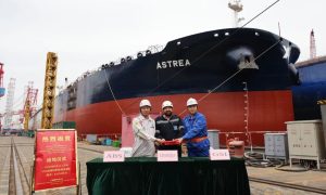 11月6日,中船广船国际为希腊Chandris(Hellas)公司(简称Chandris)建造的11.1万吨LNG双燃料原油/ 成品油船2号...