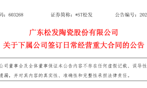 2月2日晚间,*ST松发发布《关于下属公司签订日常经营重大合同的公告》,宣布其下属公司恒力造船(大连)有限公司1艘船舶建造合同于近日签约生效...