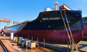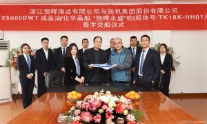 2021年3月24日,由扬帆集团股份有限公司下属全资子公司浙江东海岸船业有限公司为国内船东浙江恒晖海运有限公司承建的1艘25000吨化学品油...