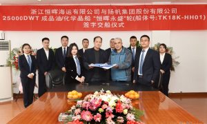 2021年3月24日,由扬帆集团股份有限公司下属全资子公司浙江东海岸船业有限公司为国内船东浙江恒晖海运有限公司承建的1艘25000吨化学品油...