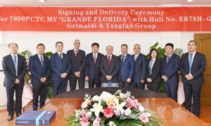 10月19日,由扬帆集团股份有限公司下属全资子公司浙江东海岸船业有限公司为意大利船东Grimaldi集团公司承建的7800车位汽车滚装船(P...