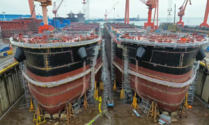 1月6日,招商船舶工业青岛船厂为希腊Lavinia公司建造的两艘82000DWT散货船同步出坞下水。自两船漂浮移位至完成坞内工程,仅用45天...