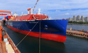 9月24日,中船集团大连造船联合中船贸易为招商轮船建造的17.5万立方米液化天然气(LNG)运输船“SEA SPIRIT”(“海韵”)轮命名...