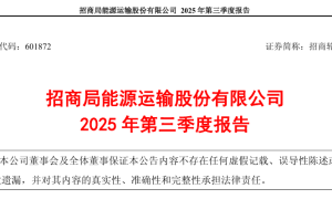 10月29日晚间,招商局能源运输股份有限公司(以下简称“招商轮船”)发布《 2025 年第三季度报告 》。 报告披露,招商轮船2025年第三...