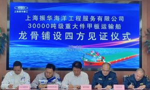 5月9日,振华海服在建的30000吨级重大件甲板运输船龙骨铺设仪式在启东海洋工程举行。 据了解,龙骨是运输船最底层的部分,也是船舶的主要基础...