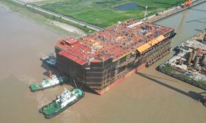 7月3日,FPSO(浮式生产储油船)“N1151(P-82)”项目艏总段在振华启东海工顺利出坞。 据了解,该FPSO项目由启东中远海运海工承...