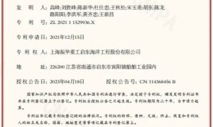 近日,振华启动海工申报的2个发明专利“一种海上平台的上下浮体分离工艺”和“双开式泥门安装工艺”获国家知识产权局专利授权。 发明专利一:一种海...
