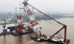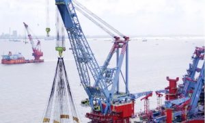 4月18日, 由振华重工为中交海峰风电建造的4000吨全回转起重船、1800吨自航自升式风电安装平台、2500吨自航自升式风电安装平台项目吉...