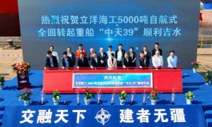 10月29日,振华重工为立洋海工建造的5000吨自航式全回转起重船“中天39”项目吉水仪式在振华启东海工隆重举行,标志着这一“海上风电施工利...