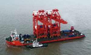 12月8日,“振华36”轮装载着美国长滩项目2台岸桥和长荣洛杉矶项目1台岸桥从长兴分公司码头顺利起航,朝着用户码头前进。 美国长滩项目岸桥采...