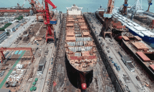 近日,广船国际所属文冲修造完成K-LINE系列14K集装箱船“麦金内克桥”进坞工作。 文冲修造1#坞总长366米,首次完成船长366米集装箱...