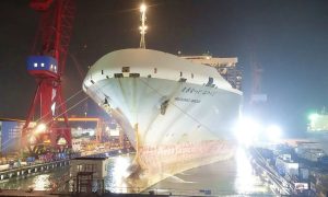 9月8日,广船国际所属文冲修造承接的K-LINE系列超大型集装箱船“麦金内克桥”顺利完成脱硫塔吊装。 “麦金内克桥”轮长365.94米,宽5...