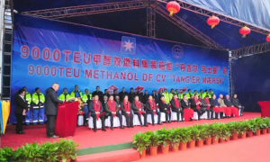 2月6日,扬子江船业集团新扬子造船为船东马士基(MAERSK)公司建造的9000TEU甲醇双燃料集装箱船“TANGIER MÆRSK”,解缆...