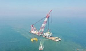 5月27日,随着下部导管架与海上升压站上部组块严密接合,振华重工顺利完成国家电投揭阳神泉海上升压站的吊装,为 风电场后续并网发电打下了坚实基...